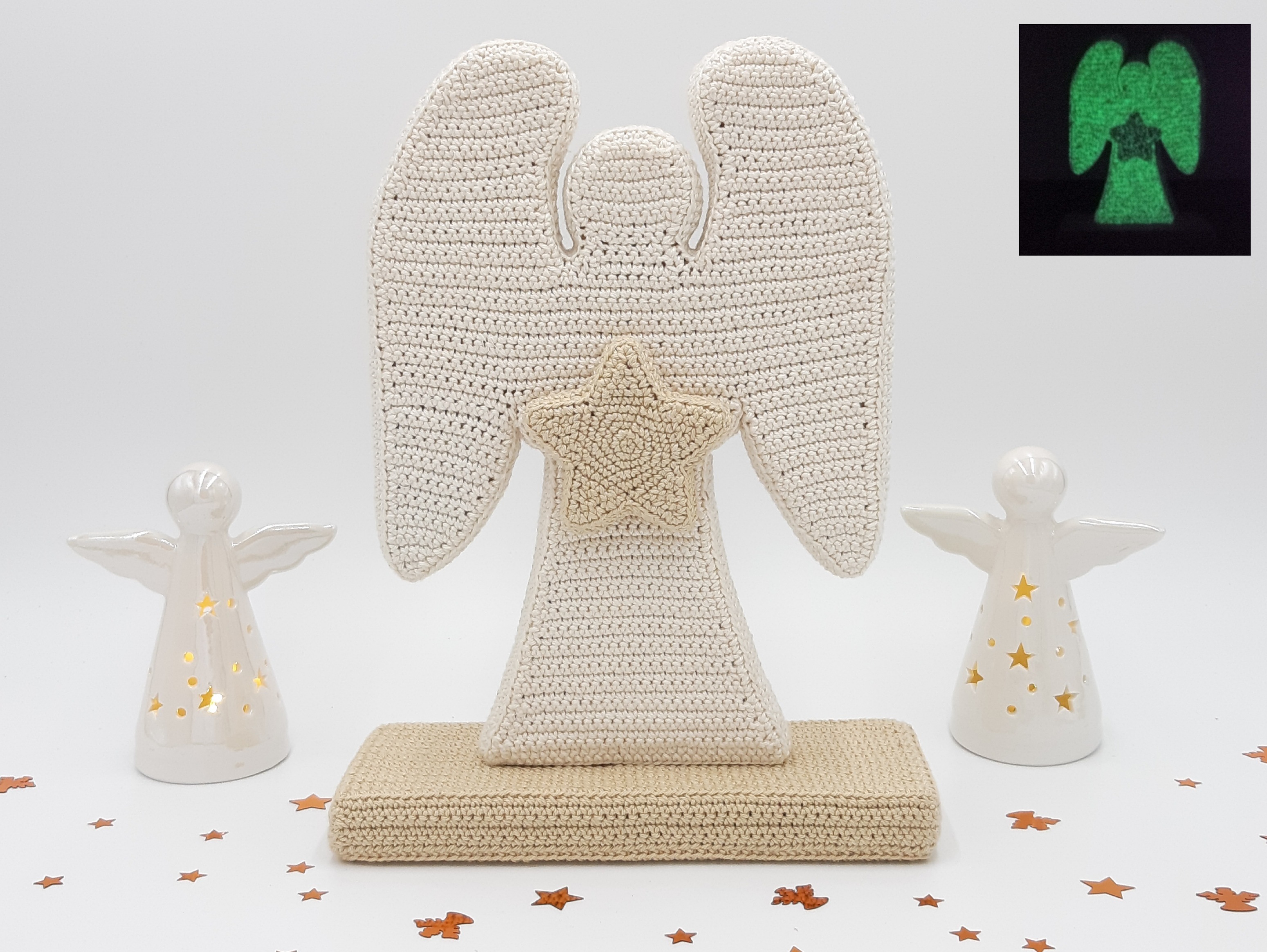 Mit eingearbeitetem Glow in the Dark Garn, bietet der Engel auch im Dunkeln das gewisse Etwas.