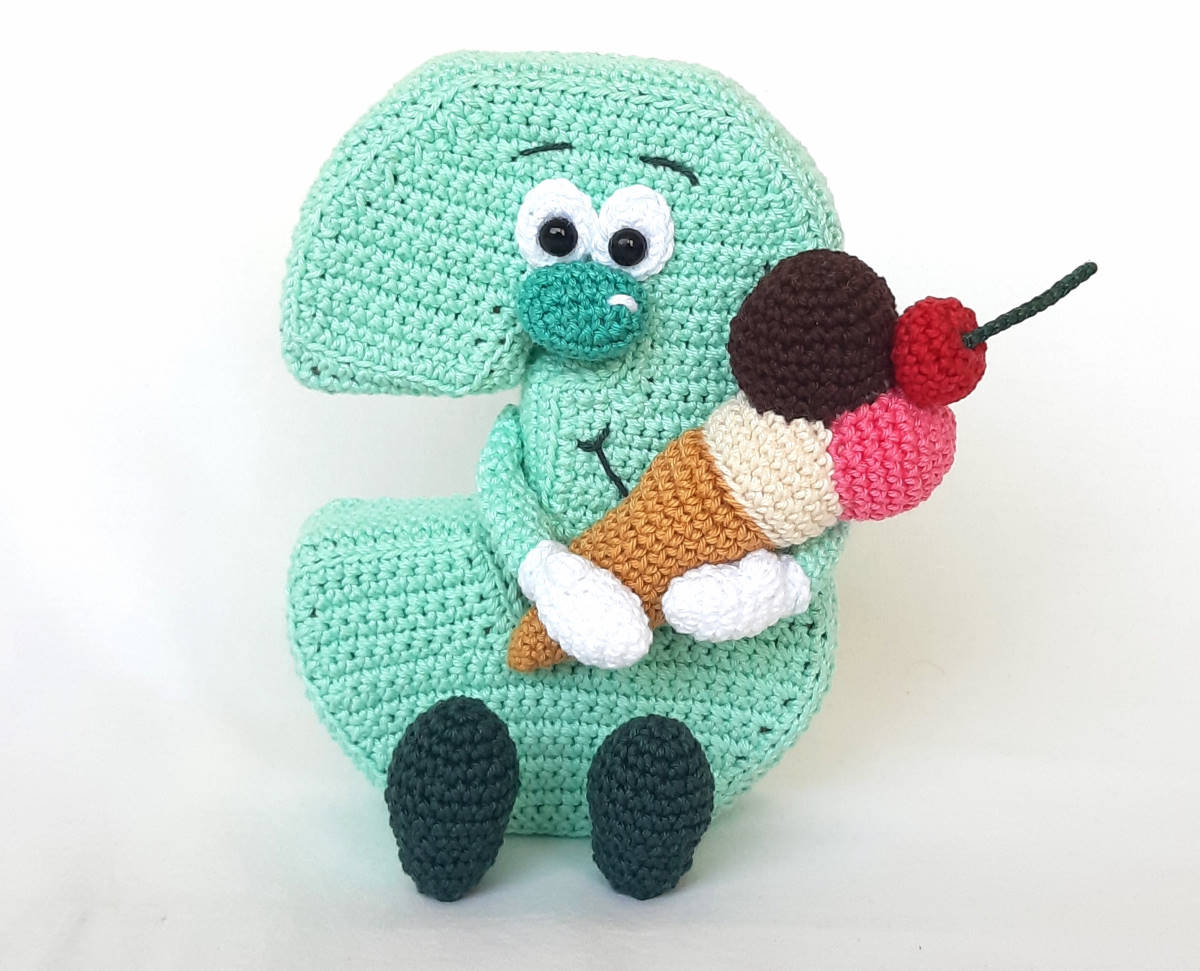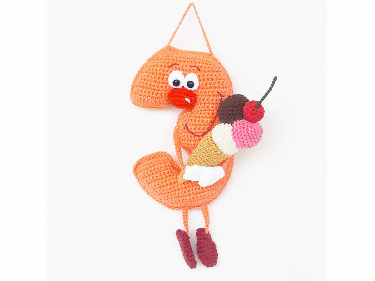Die Anleitung umfasst: die Nummer 3 in in stehender 3D und hängender Variante, sowie für das Eis mit Hörnchen und 3 Kugeln, inkl. Häkeldiagramm für die Nummer 3.