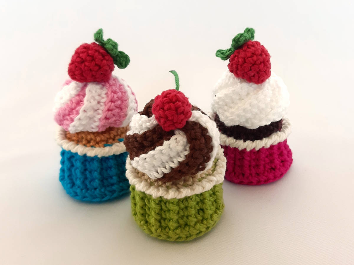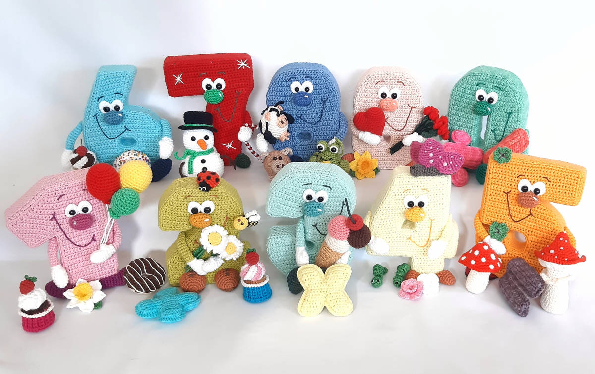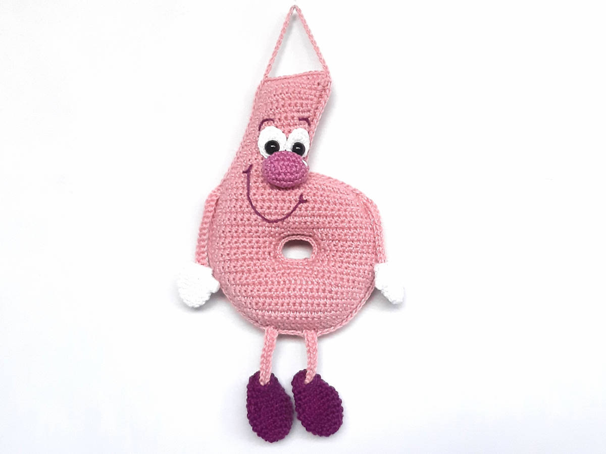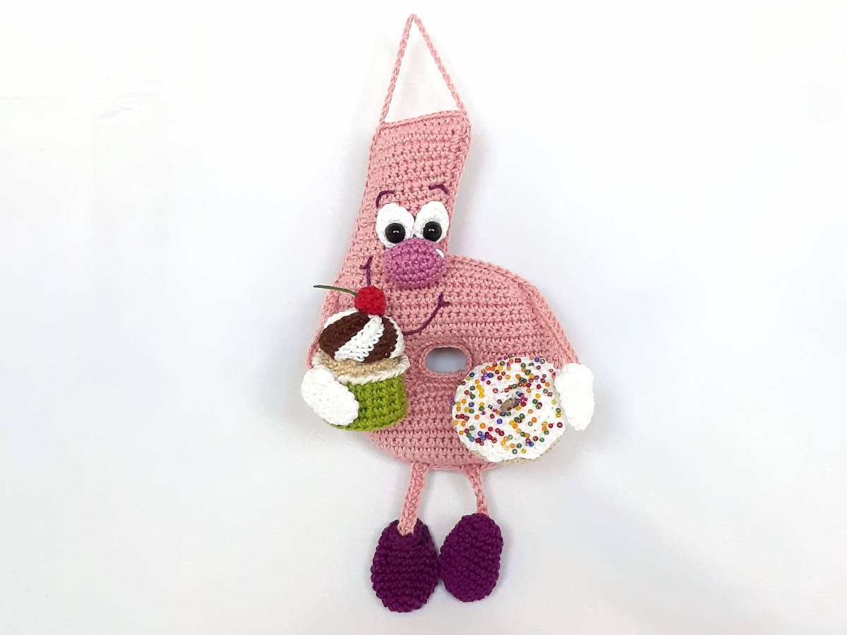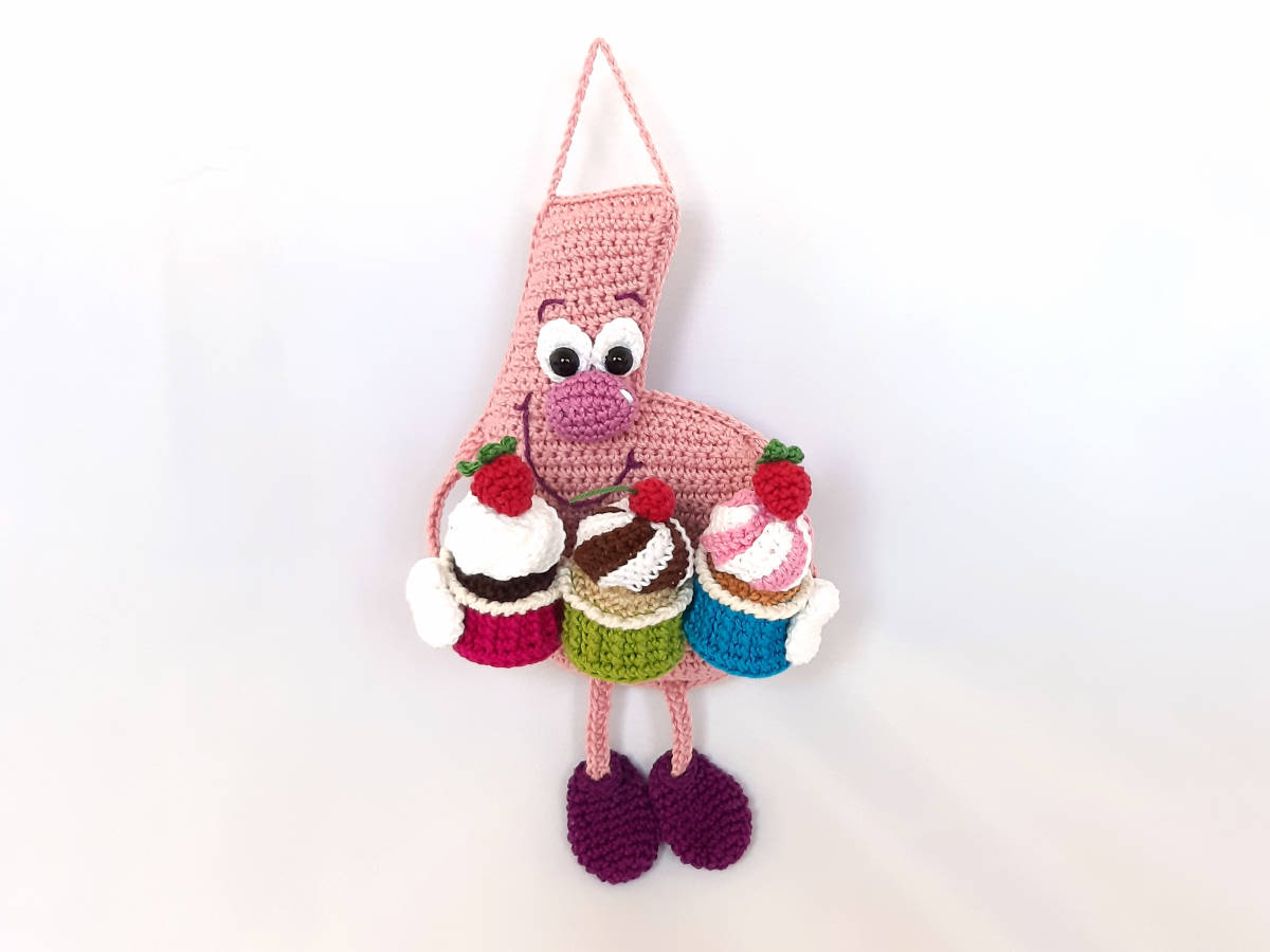 Die Anleitung umfasst: die Nummer 6 in stehender 3D und hängender Variante, sowie für die Cupcakes und Donuts, inkl. Häkeldiagramm für die Nummer 6.