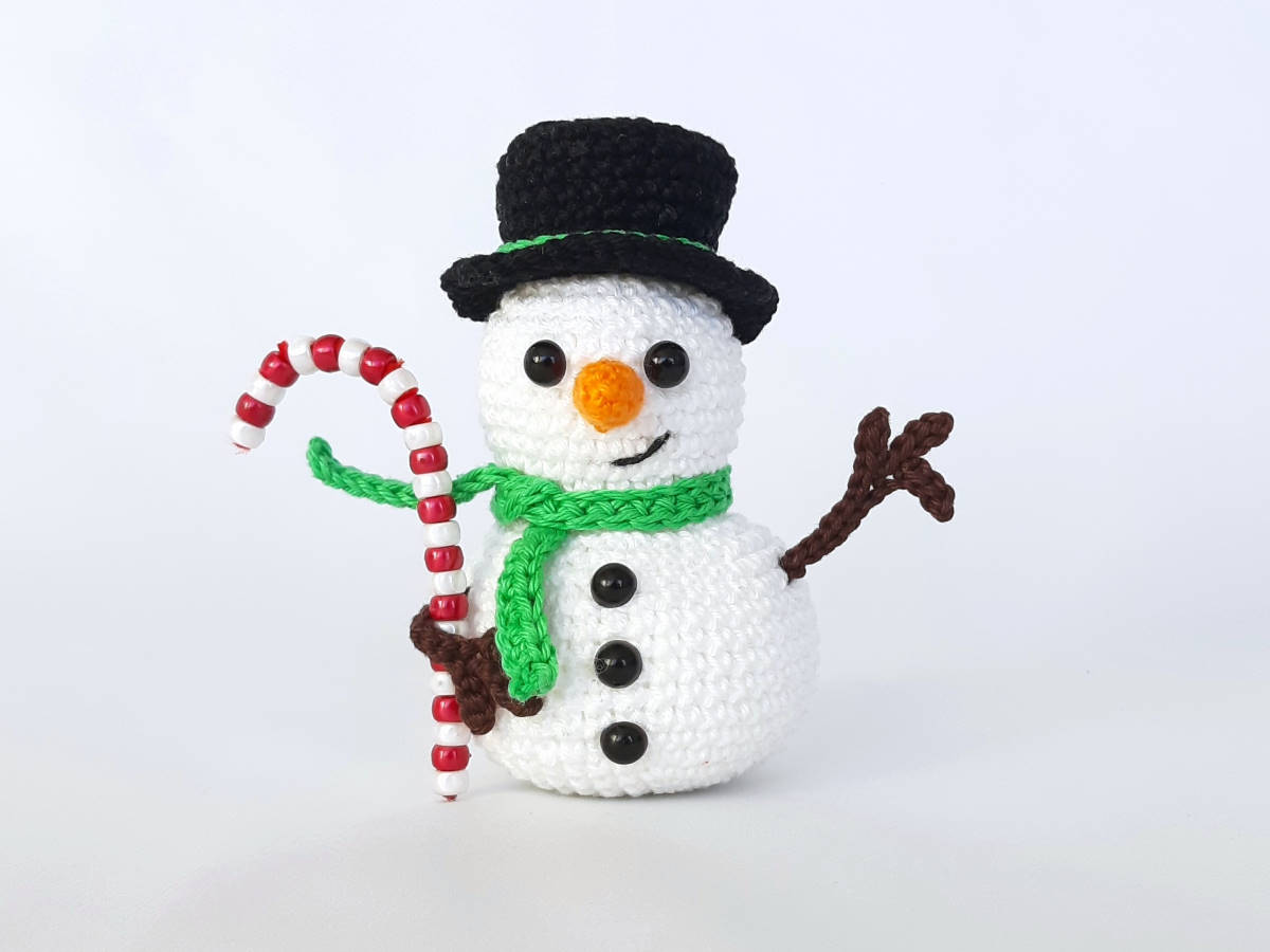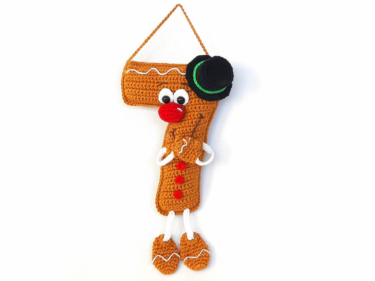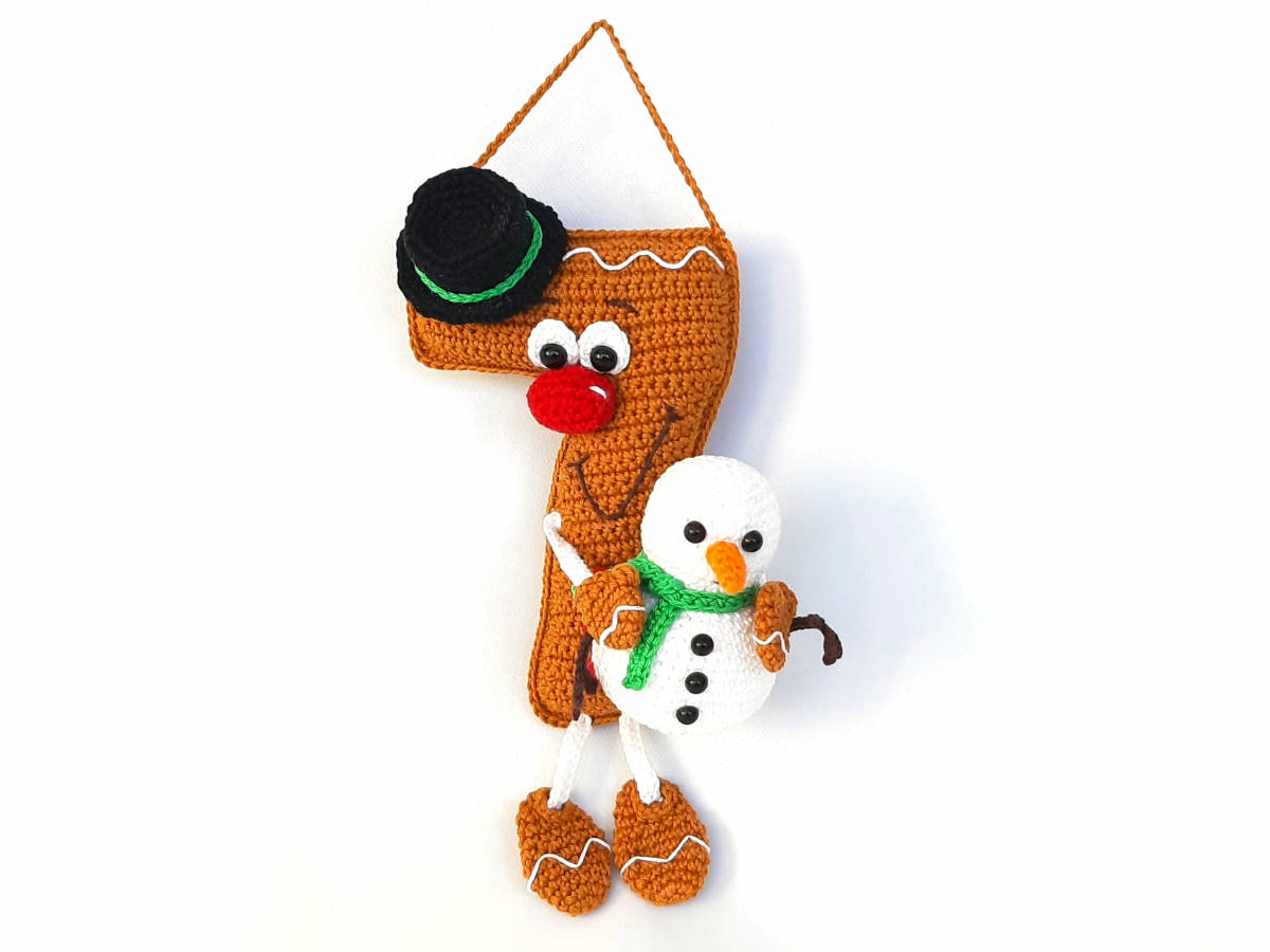 Die Anleitung umfasst: die Nummer 7 in stehender 3D und hängender Variante, sowie für den Schneemann und die Zuckerstange, inkl. Häkeldiagramm für die Nummer 7.
