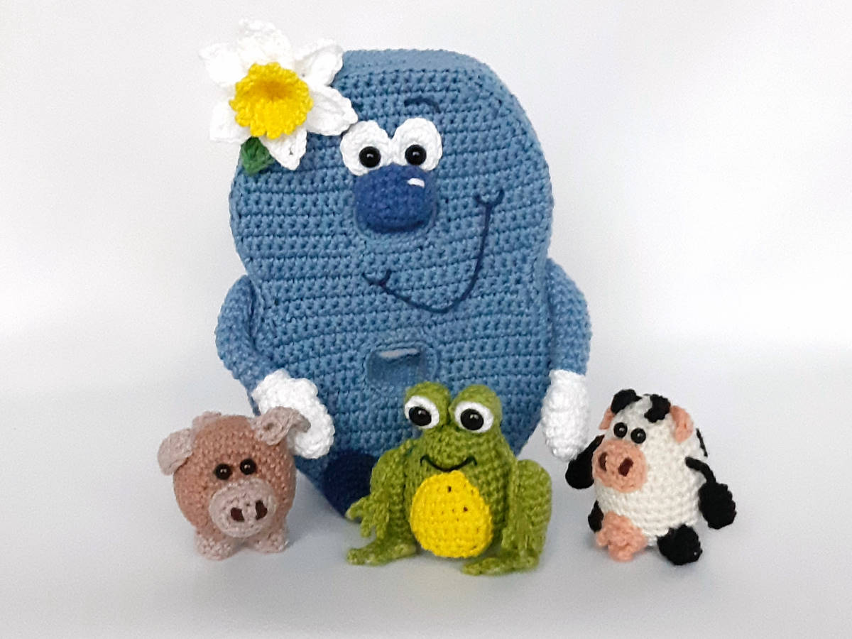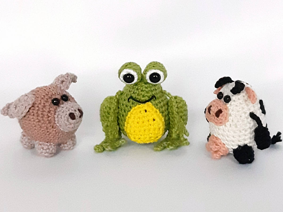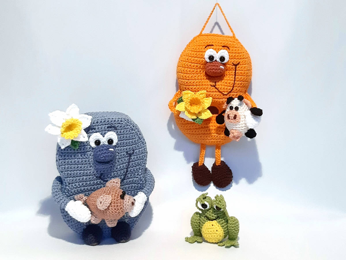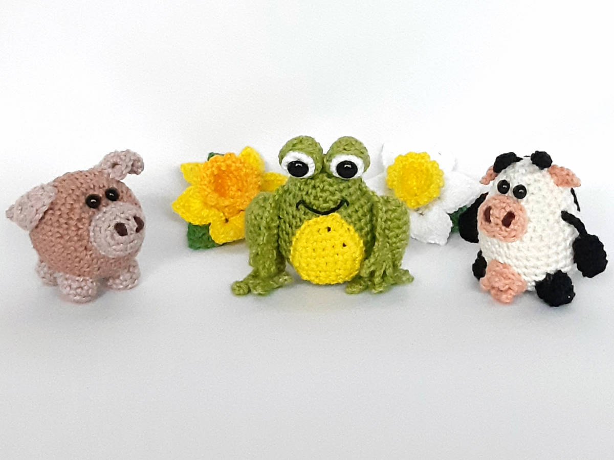Die Anleitung umfasst: die Nummer 8 in stehender 3D und hängender Variante, sowie für die tierischen Ostereier Frosch, Schwein und Kuh, inkl. Häkeldiagramm für die Nummer 8.