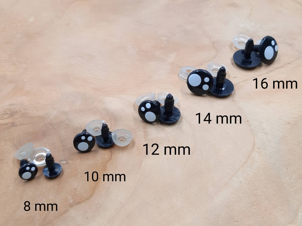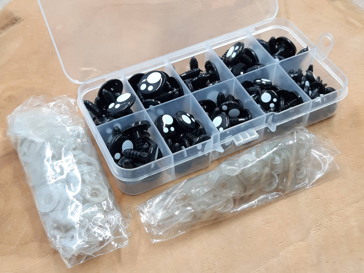 In der Box befinden sich jeweils 10 Paar Augen in den Größen (inkl. Sicherheitsscheiben):