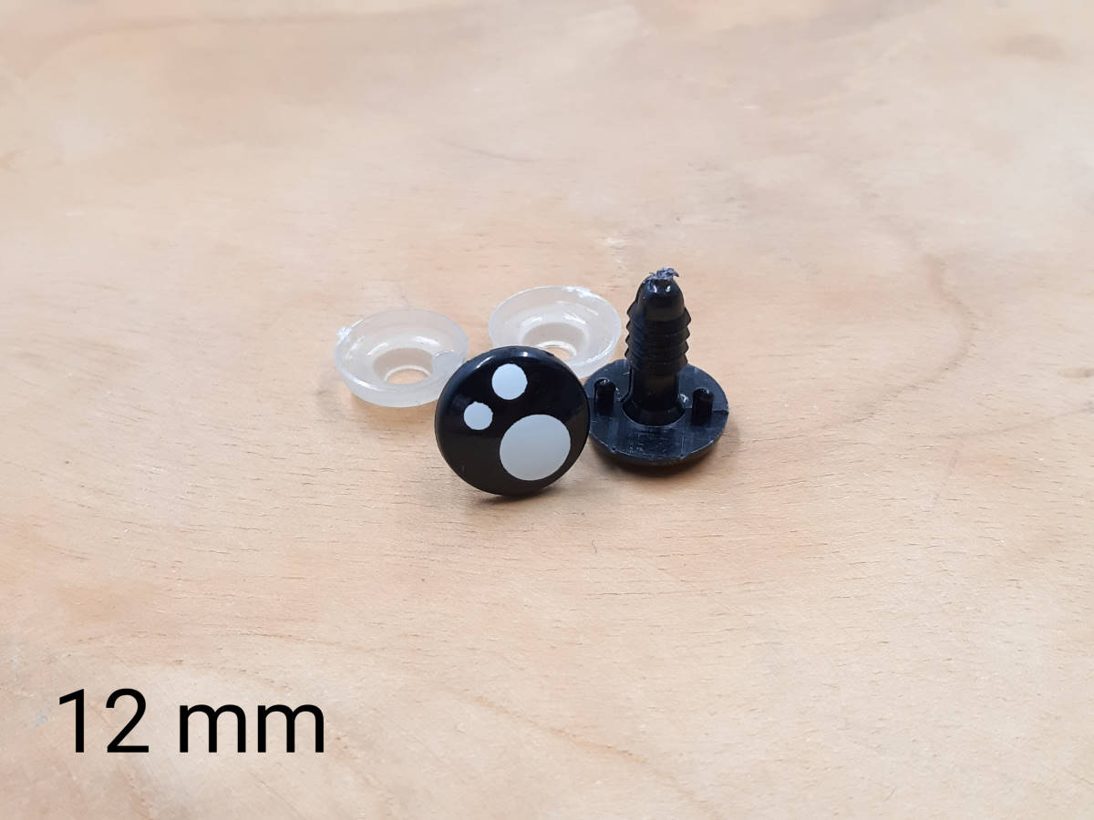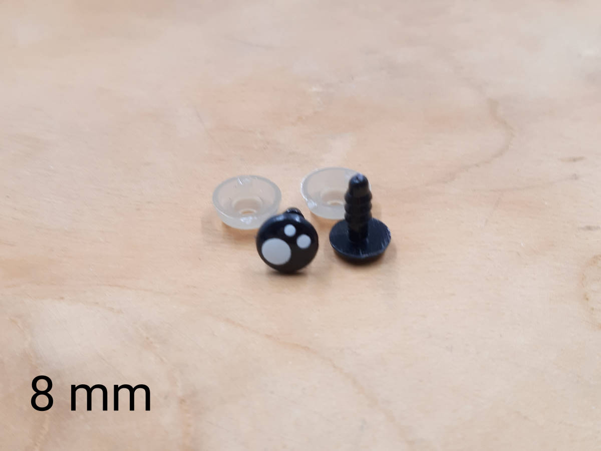 5 Paar Sicherheitsaugen in schwarz, flach und mit weißen Punkten
