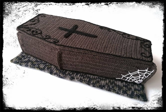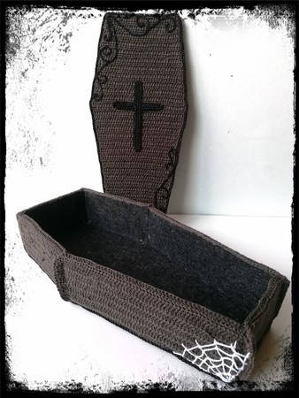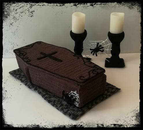 Häkelanleitung: Süßes oder Saures - Sarg mit Kerzenleuchtern (DE/EN)